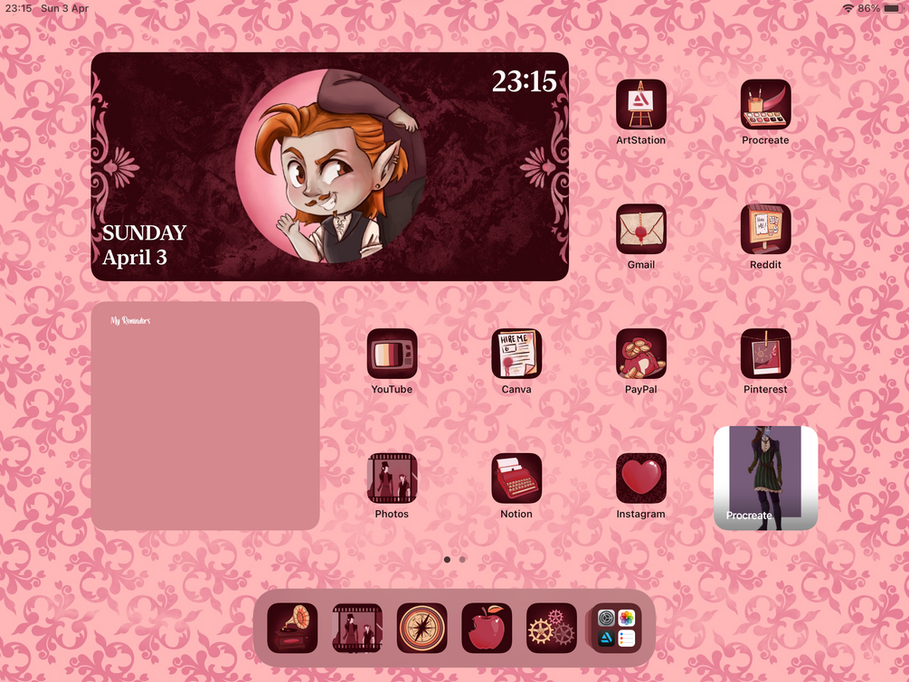 This pack includes 20 high resolution illustrations made by me that you can use to build a setup similar to the one shown in the picture using Shortcuts. There are 16 unique drawings, 18 2048x2048px illustrations, one 1620x813px banner and the 1620x2160px wallpaper. Since the actual product is high resolution images, they can be used in any device or project you have. I'll also include an .ico version of them so they're ready to use on windows as well! The icons with "Hire me" written come with alternative version with nothing on them. I can do alterations to any pf the icons if asked.